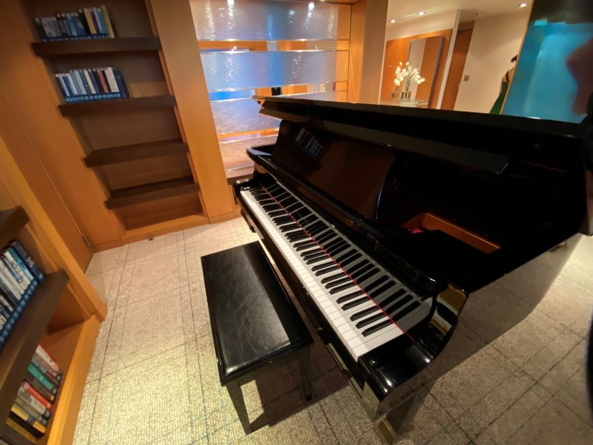 What if you are taking a cruise but really have the urge to play piano? In this case, you’re covered. This cabin features its own piano that you can play on a whim and even its own library if you decide to catch up on your reading.
