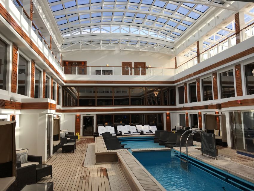 The Haven on NCL is a “resort within a resort” meaning it’s a private area just for passengers staying in these high-end rooms. One amenity on this ship in The Haven is this private indoor pool. So if you don’t want the crowds and the hive of activity at the pool deck, you can visit this spot instead.
