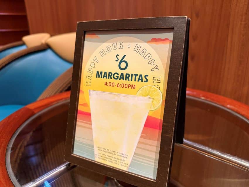 But if you keep an eye out, you can find deals. A recent cruise had $6 margaritas in the afternoons. Another had happy hour specials. This isn’t every cruise, but keep an eye out as they can save a ton.