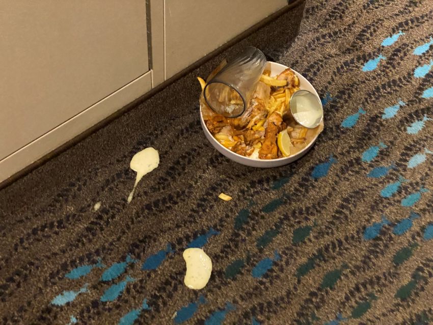 Of course when you take food from the dining room back to the cabin to eat — or you order room service — there’s always the question of what to do with your dishes.