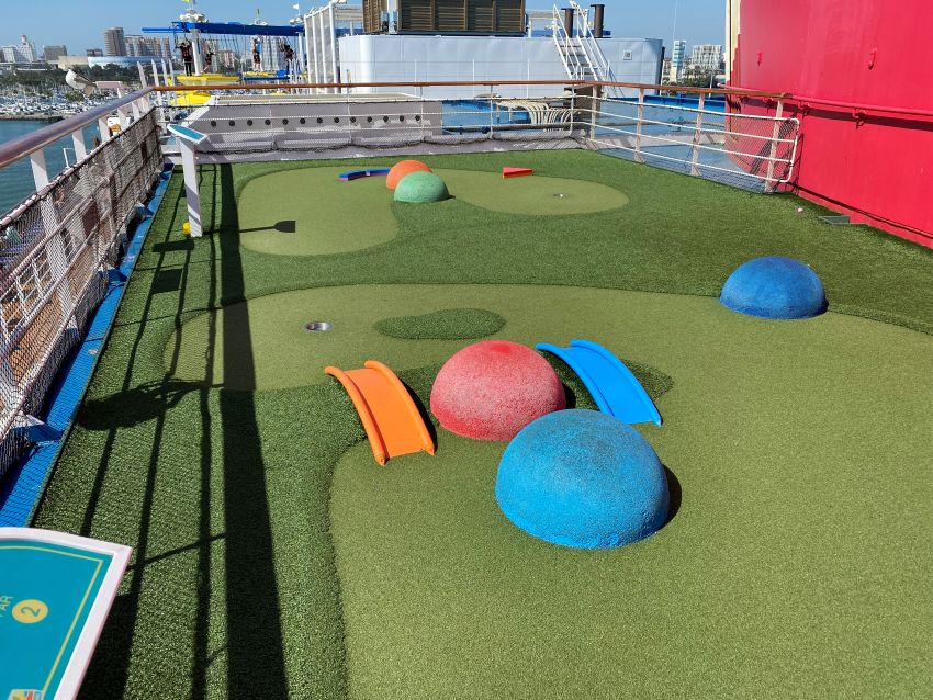 If you have kids… or you are just a kid at heart… one of the fun things to do on any large cruise ship is to play the games. Ships have a putt-putt mini-golf course that adults and kids will find entertaining (the wind on a ship makes it challenging). As well, ping-pong is also a favorite with the cruise lines even holding tournaments so you can challenge your fellow passengers. Other games like foosball and more are also available.