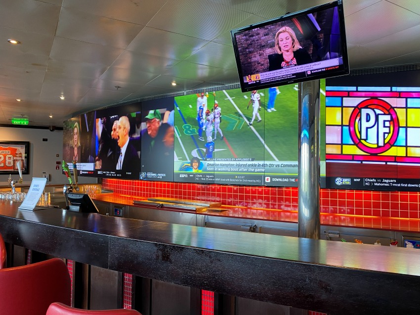 If your ship has a SkyBox Sports Bar, it’s the best place to watch the game on the ship.