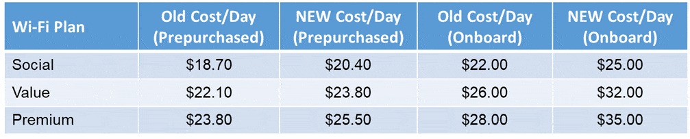 Service charges aren’t the only item on the ship seeing a price increase. We’ve also noticed that the rates for wi-fi service on Carnival is increasing as well.