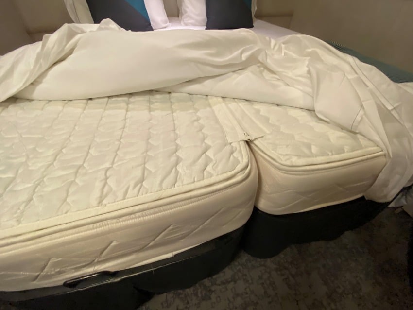 Across cruise lines the beds are usually similar. It’s two mattresses put together (or taken apart, depending on your preference) that provides plenty of space for a couple.