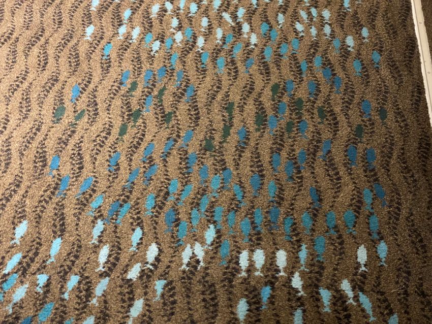 Some Norwegian ships have carpets with a design with lots of small fish. On other ships it’s a design with random triangles. As an aid to passengers, all the of these face forward. So you are walking in the direction of the fish or the triangles on the carpet, you’re going forward. Walking the opposite direction? Then you’re headed aft.