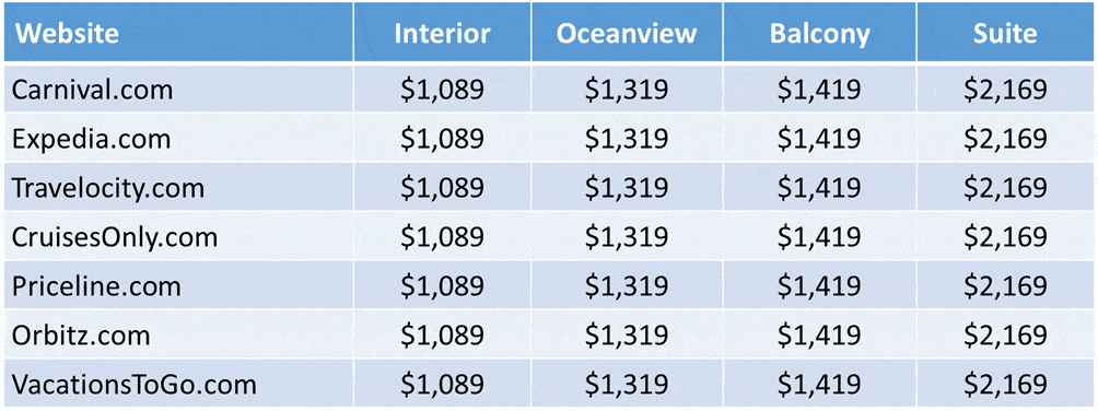 Cruise Buying Tip: Prices Are Often the Same Across Every Site