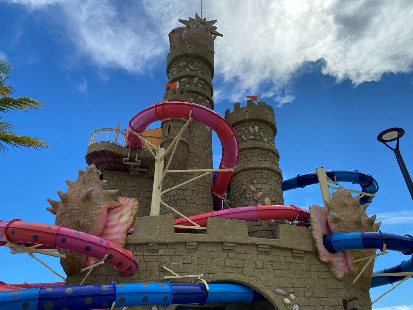 Waterslides: At the center of the park is the Suncastle, and within that structure are two waterslides — the Mach 3 Marlin and the Flash Flamingo. These slides cost $15 per person for unlimited rides during the day.