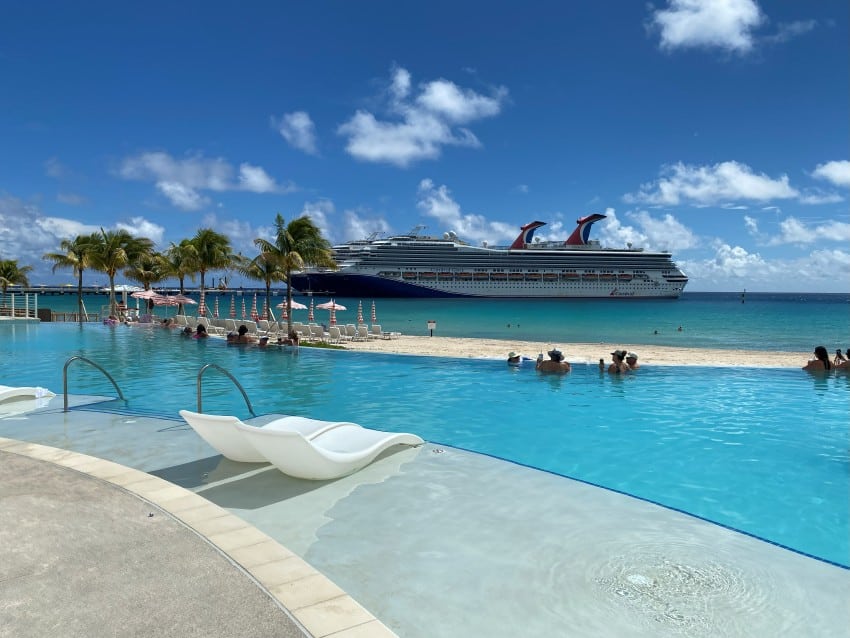 First, you can head out in the morning, hit the beach or the pool, and then grab your lunch before heading back to the ship in the middle of the day. This gives you a respite from the heat and humidity in the cool of the ship. And you can also grab a drink onboard or reapply sunscreen or even take a nap.